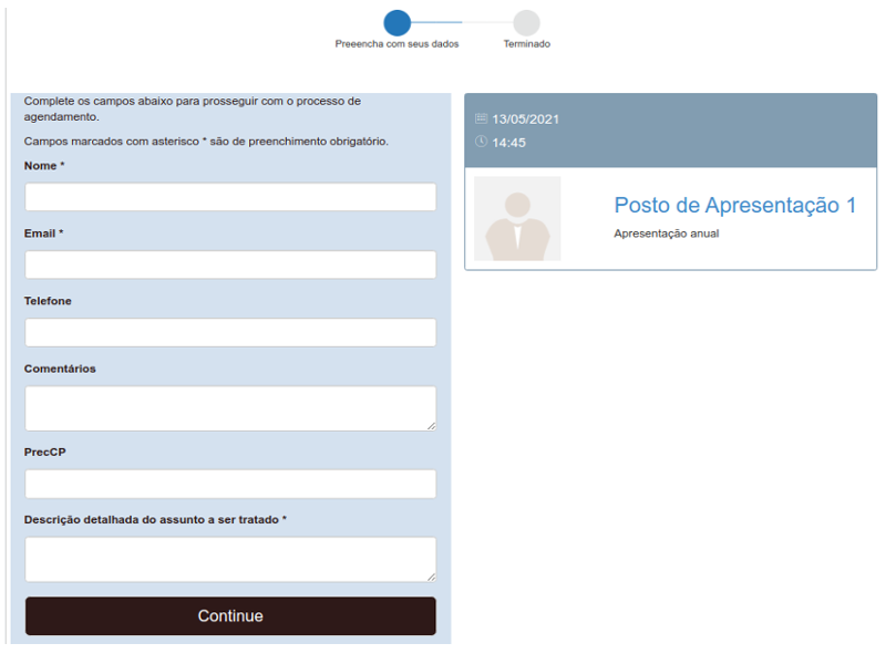 5. Selecione o posto para o atendimento (alguns serviços possuem apenas um posto) e clique em 'Fazer um agendamento'